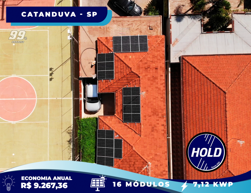 Uma nova residência no bairro Higienópolis, em Catanduva, agora conta com um sistema de energia solar eficiente e sustentável. Com a instalação de 16 módulos fotovoltaicos, essa solução garante uma produção anual de 10.776 kWh, proporcionando uma economia significativa na conta de energia.