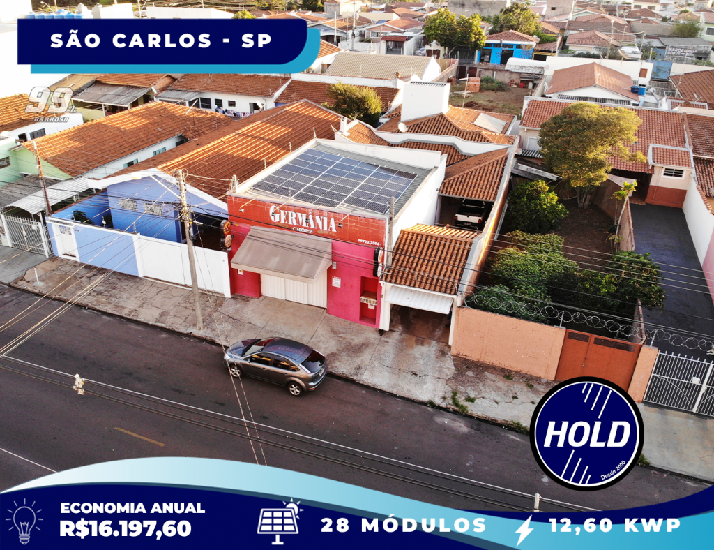 Este sistema fotovoltaico, instalado no interior de São Carlos-SP, conta com 28 módulos solares e uma potência total de 12,60 kWp. Com uma produção anual estimada de 19.056 kWh, ele proporciona uma economia significativa de R$ 16.388,16 por ano na conta de energia.