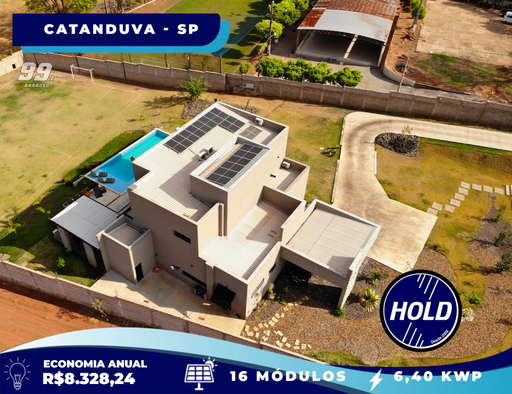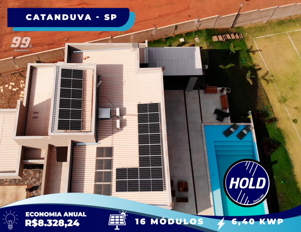 Residência no Jardim dos Coqueiros, em Catanduva, interior de São Paulo, adere à energia solar graças ao serviço de qualidade prestado pela Hold