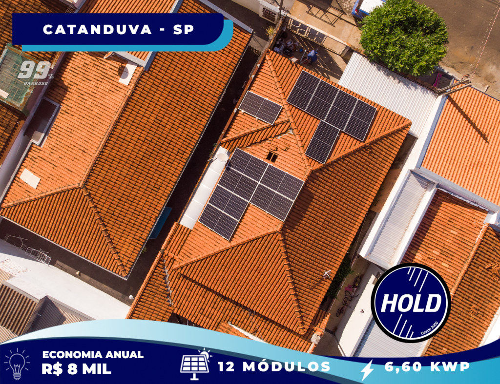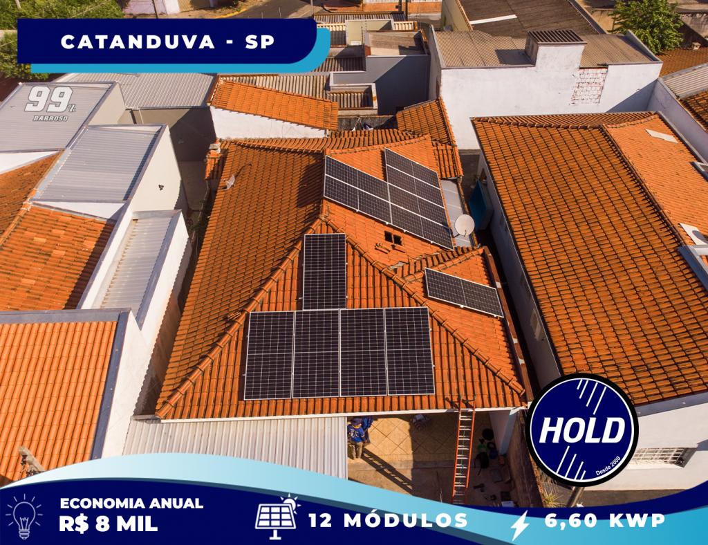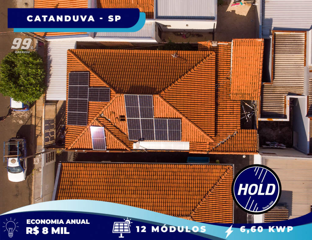 Mais uma instalação de sucesso realizada pela Hold Energia Solar! O sistema conta com 12 placas solares e potência total de 6,60 kWp, proporcionando uma economia estimada de R$ 8.000,00 por ano na conta de luz.