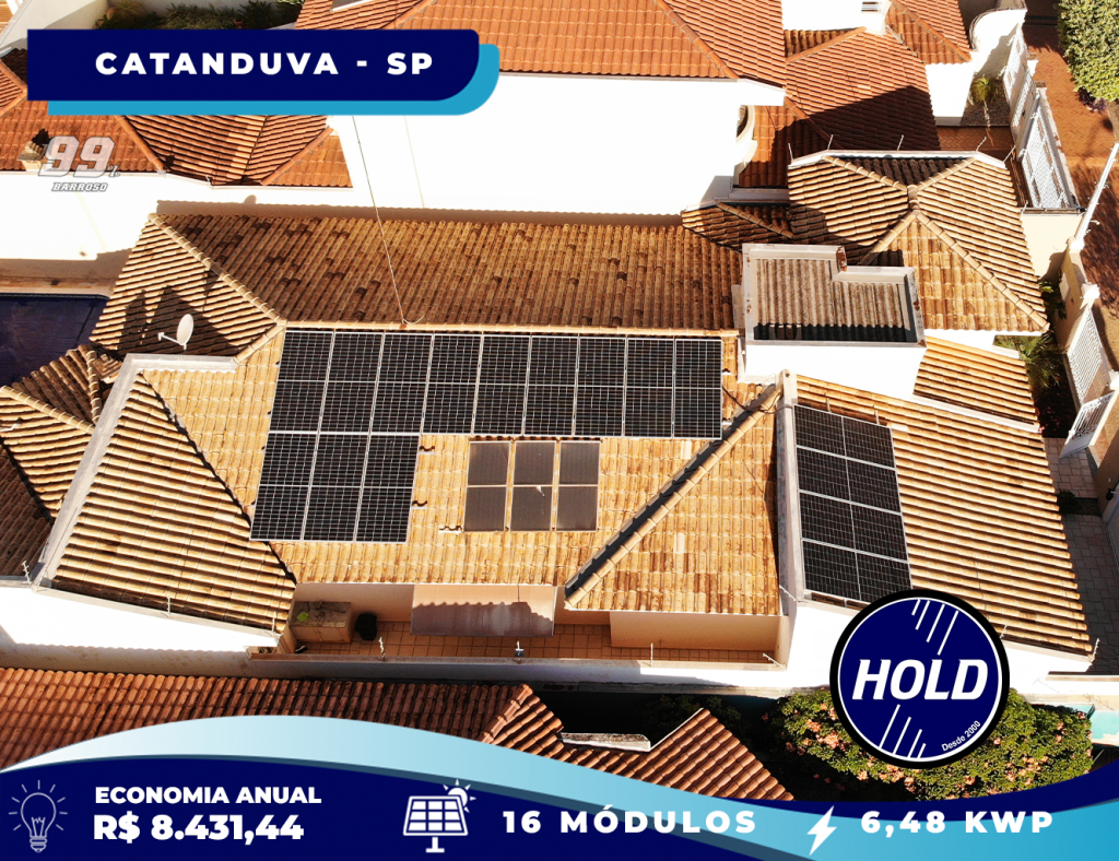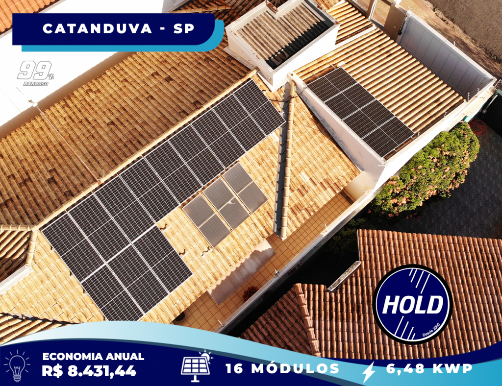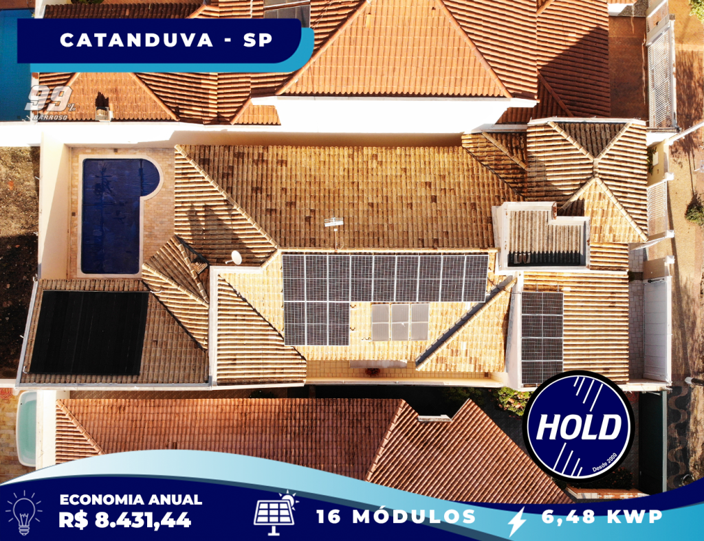 Este sistema fotovoltaico, instalado no bairro Residencial Agudo Romão, em Catanduva-SP, conta com 16 módulos solares e uma potência total de 7,12 kWp. Com uma produção anual estimada de 10.776 kWh, ele proporciona uma economia de aproximadamente R$ 9.267,36 por ano na conta de energia.
